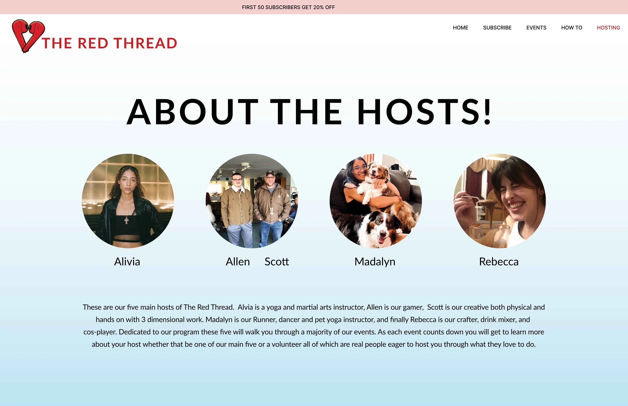 Creating a bridge between social interactions and technology use, The Red Thread develops a global community of go-getters. With the use of an app as a home base, the guidance of hosts and volunteers, and the community meeting up in person to create the community and develop stronger bonds between people.